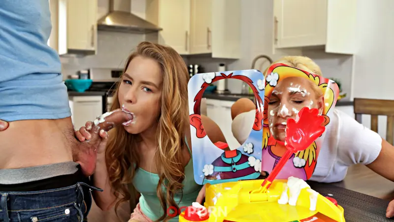 Lilly Ford and her stepbrother Alex D. are playing board games with Lilly’s mom. Lilly’s mom is disturbed by the sexual flirting between her daughter and stepson, but she sets up pie face with them. Even before they start Lilly has her hand stroking Alex’s dick. When Lilly’s mom gets pied, the two teens convince her she has to leave it on for five minutes. While she waits, Lilly takes the opportunity to suck Alex off at the table. They even have fun with the whipped cream to turn Alex’s stiffie into a sweet treat.When Lilly’s mom washes her face and goes to take a nap, the two teens hide their illicit activity until she falls asleep on the couch. The second there’s no pretense to maintain, Lilly leans over the table so Alex can pounder her juicy bare fuck hole. Then she scoots forward while he sits on a chair until the pint sized hottie is giving him a ride in her greedy snatch.Turning around, Lilly rides Alex with her back to him so he can watch her tan line ass jiggle as she gets herself off on his fuck rod. His reward is for the blonde spinner to drop to her knees and resume her earlier blowjob. This time Lilly won’t stop stroking and sucking until Alex has given her a blast of hot jizz right in the face.